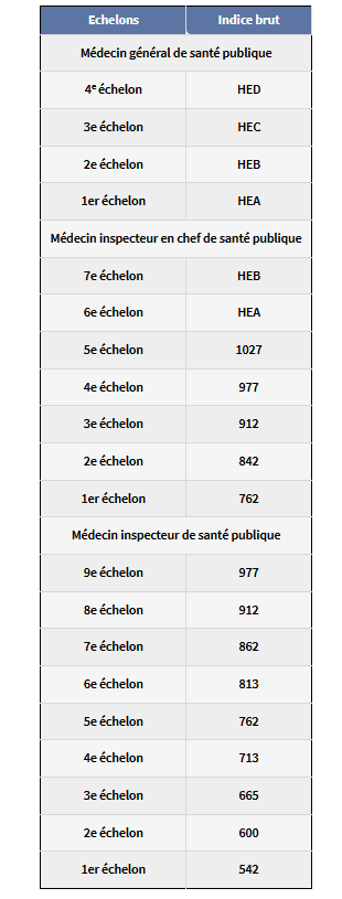 Échelonnement indiciaire afférent au corps des médecins inspecteurs de santé publique :